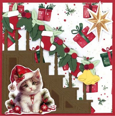 Deze snijmal Very Furry Stair uit de serie A Very Furry Christmas van Berrie's Beauties is te gebruiken in combinatie met alle gangbare stans- en embossingmachines.