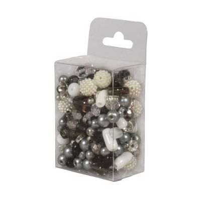 Deze mix bevat zwarte, grijze, witte en zilverkleurige kralen in verschillende maten, vormen en afwerkingen, waardoor je zelfgemaakte sieraden een unieke en diverse uitstraling krijgen. De inhoud van het doosje is afgestemd op harmonieuze kleurencombinaties en bevat glinsterende strass-kralen, kralen met ingelegde strass-steentjes, facetgeslepen kralen, glinsterende waxkralen en meer.