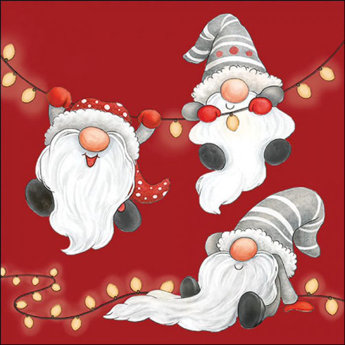 33320187 Servetten - Gnomes on the light chain red verpakt per 5 stuks
