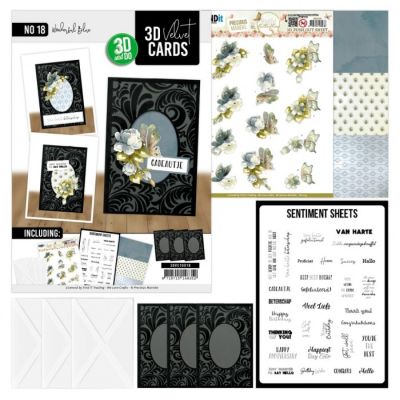 3DVC10018 3D and Do set - 3D Velvet Cards - Precious Marieke - Wonderful Blue - Rechthoekig - Zwart - 3 kaarten