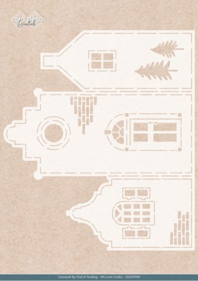 Cdest090 Card Deco Essentials - Folding Card Stencil - Kunststof - Cosy Winter - Cosy House Card - 24,1x21cm - A4