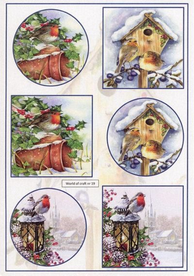 WOC10019 Knipvel - World of Craft - Nr 19 Winter Robins - Kerst Roodborstje - Parelmoer - 1 vel