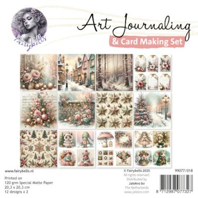 Deze Art Journaling & Card Making Set met mooie afbeeldingen en designs in het thema Kerst Roze van Fairybells is te gebruiken voor scrapbooking, kaarten maken, home deco etc. De 120 grams vellen designpapier hebben een afmeting van 20,3x20,3cm en zijn enkelzijdig bedrukt. Een verpakking bevat 24 vellen in 12 verschillende designs.