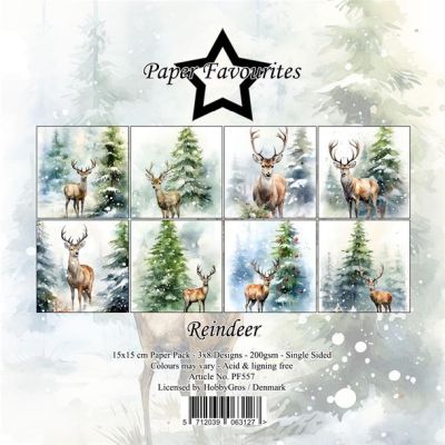 PF557 Paper Favourites - Paperpack - Reindeer - 15x15cm - 200gsm - enkelzijdig - 3x8 designs - 24vel - Kerst/Winter/Rendier