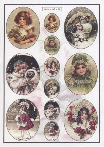 WOC10016 Knipvel - World of Craft - Nr 16 Vintage Winter Kids - Meisjes - Parelmoer - 1 vel