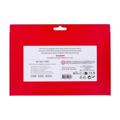 Met de viltstiften van hoogwaardige kwaliteit van Bruynzeel kun je de mooiste tekeningen maken en de mooiste kleurplaten inkleuren! Als je de stiften al een tijdje niet meer gebruikt hebt en ze een beetje uitgedroogd zijn, geef ze dan een tweede leven door ze in water te dompelen. Dankzij het plastic etui zijn de stiften gemakkelijk terug op te bergen in de kartonnen verpakking. Deze unieke set bevat 50 viltstiften in bijna elke kleur die je maar kunt bedenken! Geschikt voor kinderen vanaf 4 jaar.