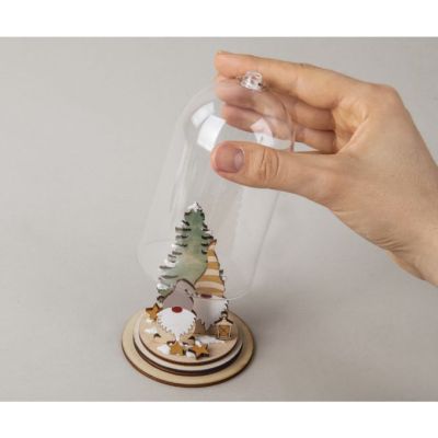 Deze kunststof koepel met voet is 13 cm hoog en voorzien van een decoratief jute koord. De voet heeft een diameter van 8 cm.