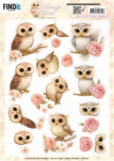 CD12412 3D Knipvel - Berrie's Beauties - Owlways Yours - Whimsy - A4 - Uilen
