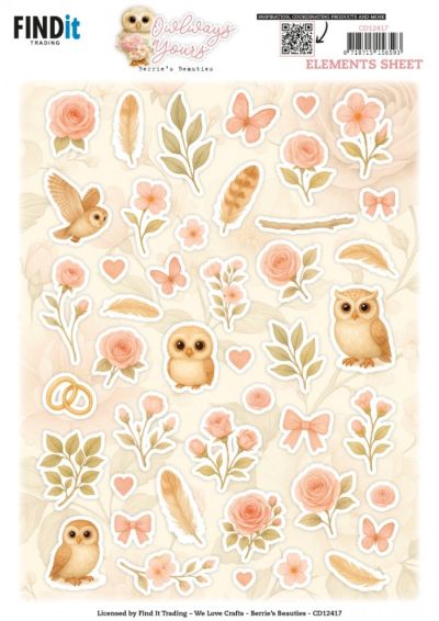 CD12417 Knipvel - Berrie's Beauties - Owlways Yours - Small Elements - A4 - Uilen