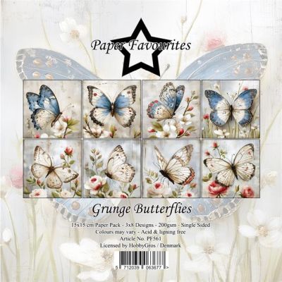 PF561 Paper Favourites - Paperpack - Grunge Butterflies - 15x15cm - 200gsm - enkelzijdig - 3x8 designs - 24vel - Vlinders/Bloemen