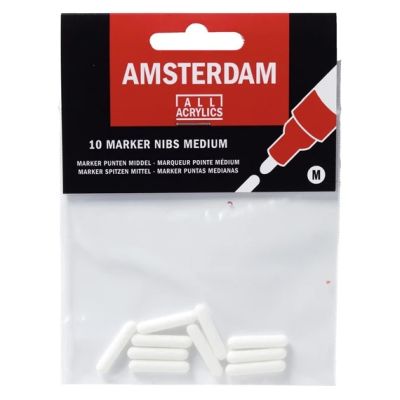 De punten van Amsterdam acrylmarkers zijn omkeerbaar, dus als je punt versleten is, kun je hem omdraaien om hem een tweede leven te geven. Als beide kanten van je penpunt versleten zijn, kun je deze eenvoudig vervangen door een nieuwe. Deze set bevat 10 medium marker punten (4 mm, rond).