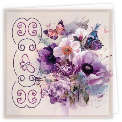 Stdopp027 Stitch and Do - Embroidery Cards 27 - Purple Flowers - Bloemen/Vlinders/Paars
