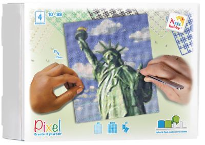 Pixel set Vrijheidsbeeld van Pixelhobby. In deze complete set is alles aanwezig van patroon, pixelplaatjes en 4 basisplaten. Geschikt voor kinderen vanaf 10+.