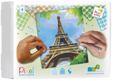 Pixel set Eiffeltoren van Pixelhobby. In deze complete set is alles aanwezig van patroon, pixelplaatjes en 4 basisplaten. Geschikt voor kinderen vanaf 10+.