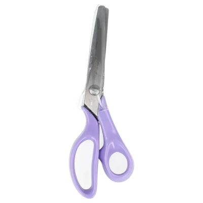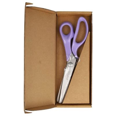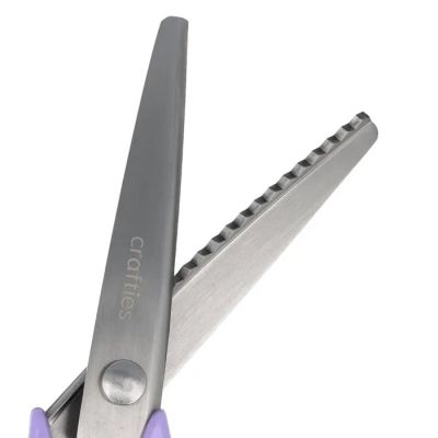 De universele Zig zag kartelschaar van Crafties is ideaal voor uiteenlopende materialen zoals stof, vilt, papier en meer. De ergonomische, lilakleurige handgreep zorgt ervoor dat knippen een fluitje van een cent is. De roestvrijstalen snijbladen geven een nette zigzagrand die rafelen helpt verminderen. Bovendien is deze stevige schaar ontworpen voor zowel links- als rechtshandigen. De Crafties kartelschaar is 20,3cm lang.