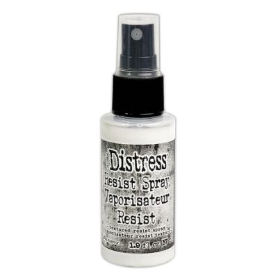 Tim Holtz Distress Resist Spray is een waterafstotende spray die na het opdrogen transparant wordt met een subtiele textuur. Je kunt de spray direct aanbrengen op diverse ondergronden zoals papier, karton, metaal en plastic. Het is aan te raden om altijd een spatscherm (splatbox) te gebruiken om je werkplek te beschermen tijdens het sprayen. Daarnaast is deze spray geschikt voor gebruik met sjablonen; vergeet niet om het sjabloon direct na gebruik schoon te maken met water. Als je de spray laat drogen en vervolgens een gekleurd, watergedragen medium aanbrengt, zal dit niet hechten aan de gebieden waar de Distress Resist Spray is aangebracht. Zo kun je mooie gespikkelde effecten creëren.