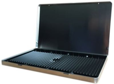 Dit lege bewaarblik van Eberhard Faber is geschikt voor 36 potloden. Het blik is voorzien van een inlegger.