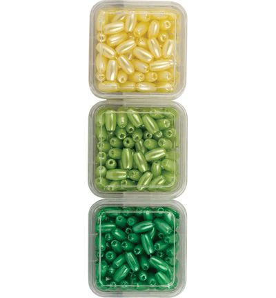 Hobby & Crafting Fun - 12100-0002 Oval Pearls Trio - Parelkraaltjes ovaal - Geel/Groen/Lichtgroen - 3x6mm - 3 doosjes in blister