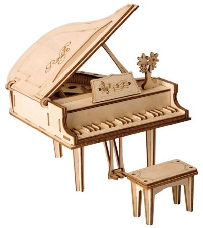 De TG402 Robotime Grand Piano is een gaaf houten bouwpakket van Rolife, speciaal ontworpen voor volwassenen en kids vanaf acht jaar. Dit miniatuurmodel van een grote vleugel bevat gedetailleerde elementen zoals de drie pedalen, een muziekstandaard en zelfs een vaasje met bloemen. De klep van de vleugel kan open en dicht, wat de interactie met het model vergroot. De pianokruk en fraaie lasergraveringen maken het extra mooi.