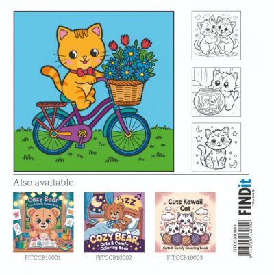 FITCCB10003 FindIt Color - Cute & Comfy Coloring Book - Cute Kawaii Cat - 40 pagina's - 21,6x21,6cm - Kleurboek