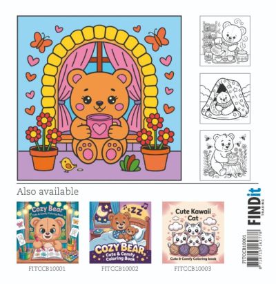 FITCCB10001 FindIt Color - Cute & Comfy Coloring Book - Cozy Bear 1 - 40 pagina's - 21,6x21,6cm - Kleurboek
