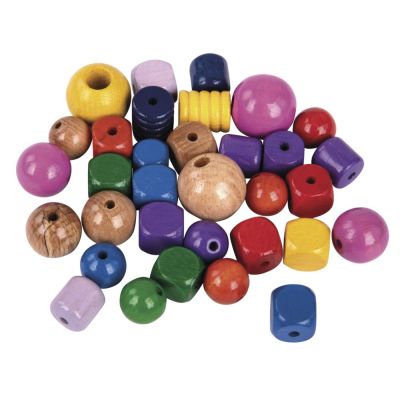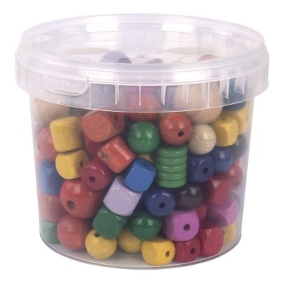 Deze kleurrijke houten kralen in verschillende maten en vormen stimuleren de creativiteit! Rijgen is leuk voor jong en oud!