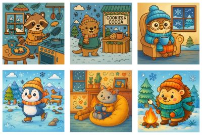 FITCCS10001 FindIt Color - Cozy Colouring and Do - Cards Set - Winter Friends - 6 kleurkaarten 128x128mm + onderkaarten + enveloppen - 135x270mm