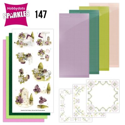 Deze handige set met Hobbydots-Sparkles bevat vier Sparkles stickervellen, drie oplegkaarten met patronen, drie 3D-afbeeldingen en drie vellen kaartkarton. Omdat het patroon in kleur is voorgedrukt op de oplegkaarten, kun je deze set gebruiken zonder Led Board.