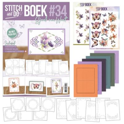 Stdobb034 Stitch and Do boek 34 A6 - Butterfly Dreams - 6 basiskaarten 2 uitdrukvellen en 12 voorgeprikte patronen van Sjaak van Went