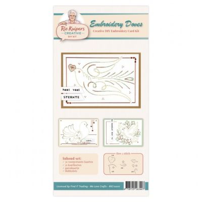 RKC10001 Rie Kuipers Creative - DIY KIT - Embroidery Doves - 3 borduurkaarten - Complete set - Duiven