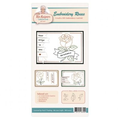 RKC10002 Rie Kuipers Creative - DIY KIT - Embroidery Roses - 3 borduurkaarten - Complete set - Rozen