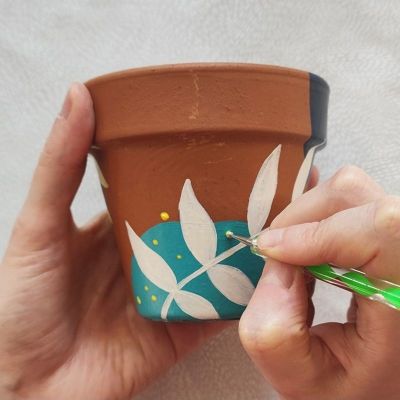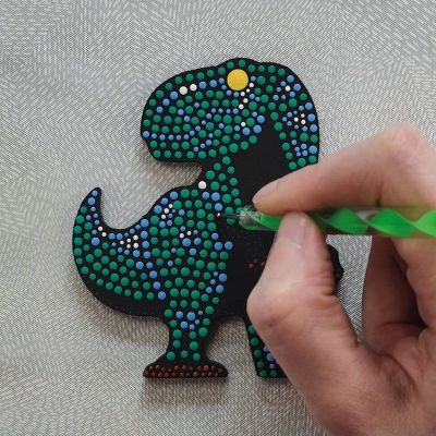 Verwijder achtergebleven verf na gebruik meteen van de stokjes, zodat het niet opgedroogd aan de stokjes blijft zitten. Zo creëer je de mooiste stippen.