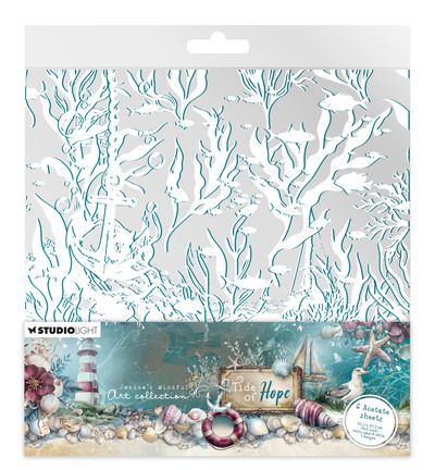 Met deze bedrukte acetaat vellen in het thema Tide of Hope uit de Jeanine's Mindful Art Collection van Studio Light geef je extra dimensie aan kaarten, scrapbook projecten, decoraties en meer. De transparante vellen laten de ondergrond doorschijnen en geven een mooie glans. Door de bedrukking ontstaat er diepte in je creatie. Perfect materiaal voor het maken van prachtig gedetailleerde kaarten in het thema maritiem!
