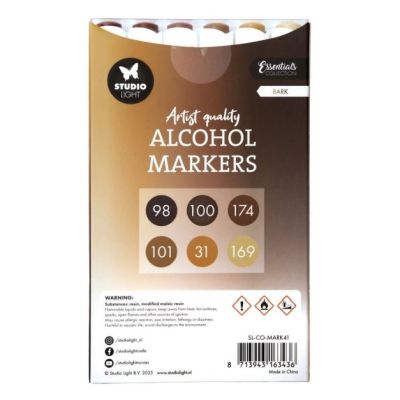 Sl-co-mark41 Studio light - Essentials Collection - Artist Quality Alcohol Markers - Bark - 2 tips - Penseelpunt + Beitelpunt - Set 6st