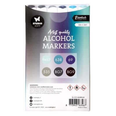 Sl-co-mark44 Studio light - Essentials Collection - Artist Quality Alcohol Markers - Sea and Sky - 2 tips - Penseelpunt + Beitelpunt - Set 6st