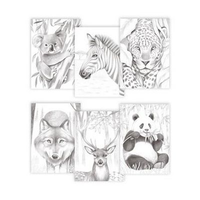 Of je nu de voorkeur geeft aan kleurpotloden, stiften, (olie)pastel, acrylverf, gouache of aquarelverf, dit blok is perfect voor jou. Het bevat zes prachtige illustraties in het thema Dieren, die elk drie keer herhaald worden, waardoor je de mogelijkheid hebt om verschillende kleurtechnieken en -stijlen te ontdekken.