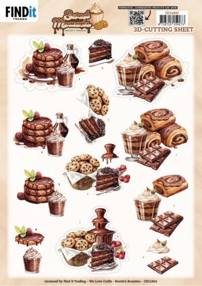 CD12433 3D Knipvel - Berrie's Beauties - Sweet Moments - Sugar Treats - A4 - Chocolade/Zoetigheid