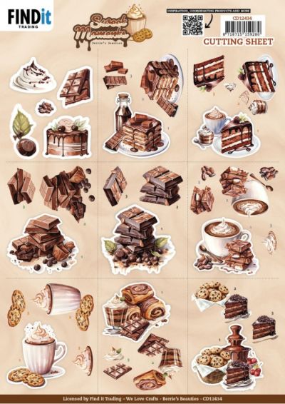 CD12434 3D Knipvel - Berrie's Beauties - Sweet Moments - Mini - A4 - Chocolade/Zoetigheid