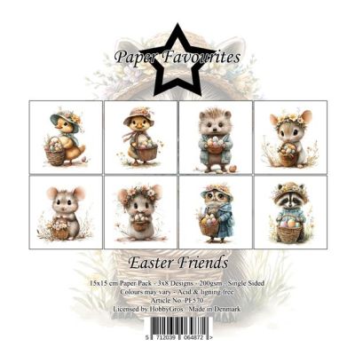 PF570 Paper Favourites - Paperpack - Easter Friends - 15x15cm - 200gsm - enkelzijdig - 3x8 designs - 24vel - Pasen/Dieren/Eieren