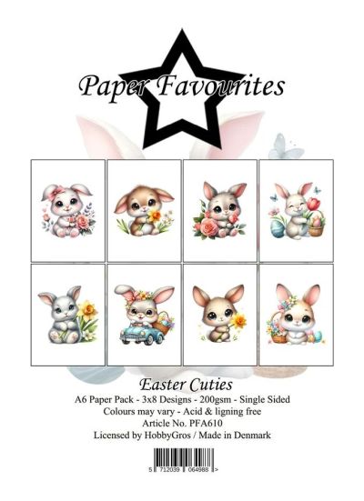 PFA610 Paper Favourites - Paperpack - Easter Cuties - A6 - 200gsm - enkelzijdig - 3x8 designs - 24vel - Pasen/Konijntjes
