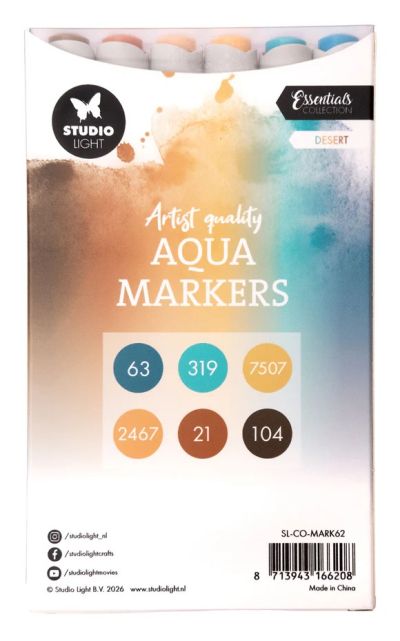 Sl-co-mark62 Studio light - Essentials Collection - Artist Quality Aqua Markers - Desert - 2 tips - Fijne + Brede Penseelpunt - Set 6st