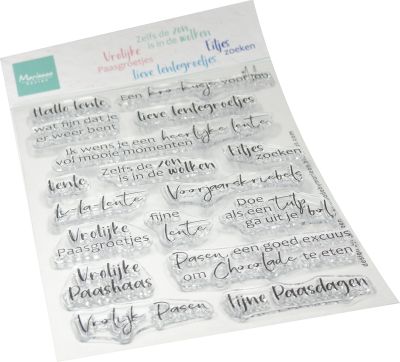 Maak uw voorjaarscreaties compleet met de prachtige stempelset Lente groetjes (CS1193), ontworpen door Marleen van der Meer voor Marianne Design. Deze set bevat een variatie aan Nederlandstalige teksten die perfect passen bij het ontluikende voorjaar. Of u nu een kaartje wilt sturen voor Pasen, iemand een "Lente groetje" wilt sturen, of uw cadeaus wilt voorzien van een vrolijke tekst; deze stempels bieden de oplossing.