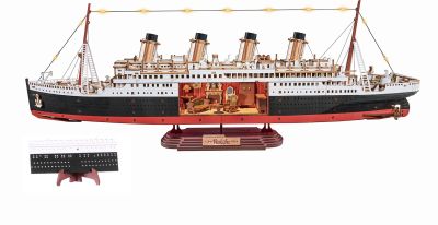 De TGL02 1912 Eternal atlantic voyager van Robotime is een houten bouwpakket van een majestueuze oceaanstomer voor volwassenen en kinderen vanaf 14 jaar. Met vier imposante schoorstenen, goudkleurige details en subtiele lichteffecten tussen de masten straalt dit model pure elegantie uit. De opengewerkte wand onthult een luxe hut met fauteuil, spiegel, open haard en kastjes, een grappig detail dat de grandeur van vroegere oceaanreizen tot leven brengt.
