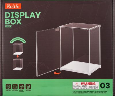 De dustcover is eenvoudig te monteren door het in elkaar klikken van zes onderdelen. Binnen vijf minuten staat de displaybox stevig opgesteld. Het transparante acrylglas biedt helder zicht, terwijl de witte kunststof bodem zorgt voor een frisse en nette uitstraling. Dankzij het gaatje aan de onderzijde kunnen kabels van verlichting netjes worden weggewerkt. De vitrine is stabiel, ook wanneer meerdere exemplaren worden gestapeld. Een must voor een chique collectie!