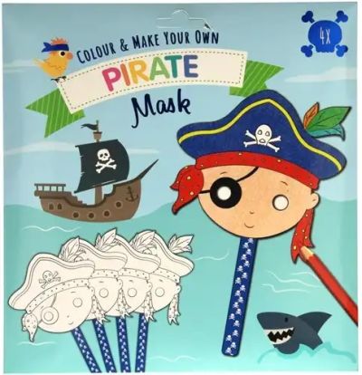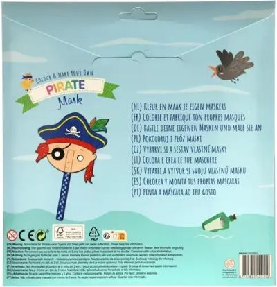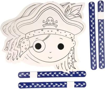 Deze set bevat 4 kartonnen piratenmaskers, ideaal voor verkleedpartijen, themafeesten en creatieve knutselactiviteiten. De maskers zijn bedrukt met stoere piratenontwerpen en kunnen naar wens worden ingekleurd en versierd. Geschikt voor kinderen vanaf 3 jaar.