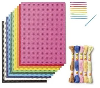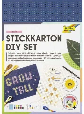 23419 Folia - Borduurkarton set - Borduurkit - Gaatjeskarton, borduurgaren, naalden - Gekleurd - 300grams - 17,5x24,5cm - 25-delig