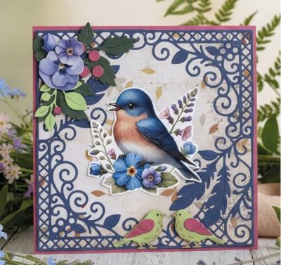 CD12437 3D Knipvel - Berrie's Beauties - Whispers of Nature - Blue - A4 - Vogels/Bloemen