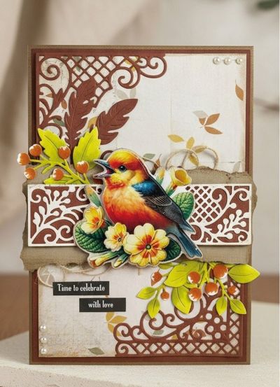 CD12439 3D Knipvel - Berrie's Beauties - Whispers of Nature - Yellow - A4 - Vogels/Bloemen