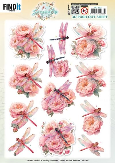 Een prachtig uitdrukvel Pink van Berrie's Beauties met 3D-afbeeldingen uit de serie Dragonflies. De plaatjes zijn makkelijk uit te drukken en een schaar is niet meer nodig. Zeer geschikt voor mensen die moeite hebben met knippen.