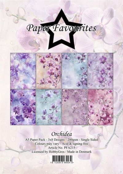 PFA215 Paper Favourites - Paperpack - Orchidea - A5 - 200gsm - enkelzijdig - 3x8 designs - 24vel - Bloemen/Orchidee